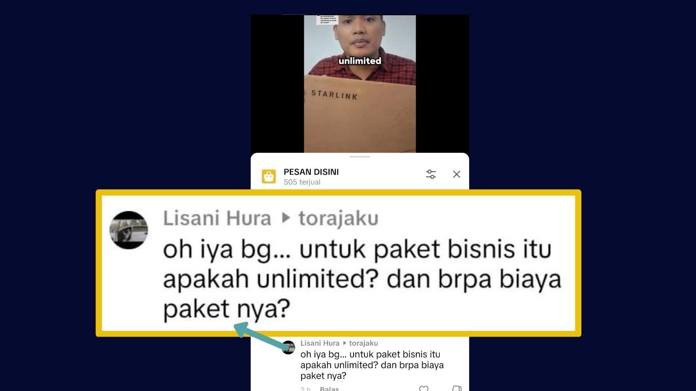 Lusiani Hura bertanya, Oh iya bang, untuk paket bisnis itu apakah unlimited? Dan berapa biaya paketnya? Saya sudah menanyakan hal ini langsung kepada Starlink, Starlink mengatakan, ya, paket Starlink Business (termasuk priority plans), menyediakan data internet unlimited tanpa batas kuota per bulan, dimana kak Lusiani Hura akan mendapatkan layanan prioritas jaringan lebih tinggi untuk kecepatan download hingga 310 Mbps, kecepatan tersebut sudah dirancang untuk kebutuhan bisnis, tanpa kontrak.