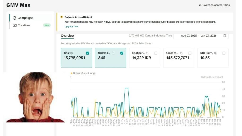 ⚠️ Penting: Jangan langsung terpaku pada total pengeluaran Rp13 jutaan selama 5 bulan. Beriklan di TikTok Ads Manager bisa dimulai dari Rp100.000 per hari, dan itu tidak akan memberatkan keuangan toko kamu.