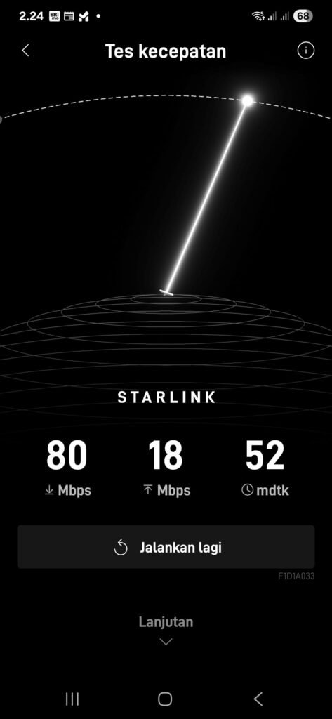 Berikut adalah kecepatan Starlink Mini yang kami dapatkan.